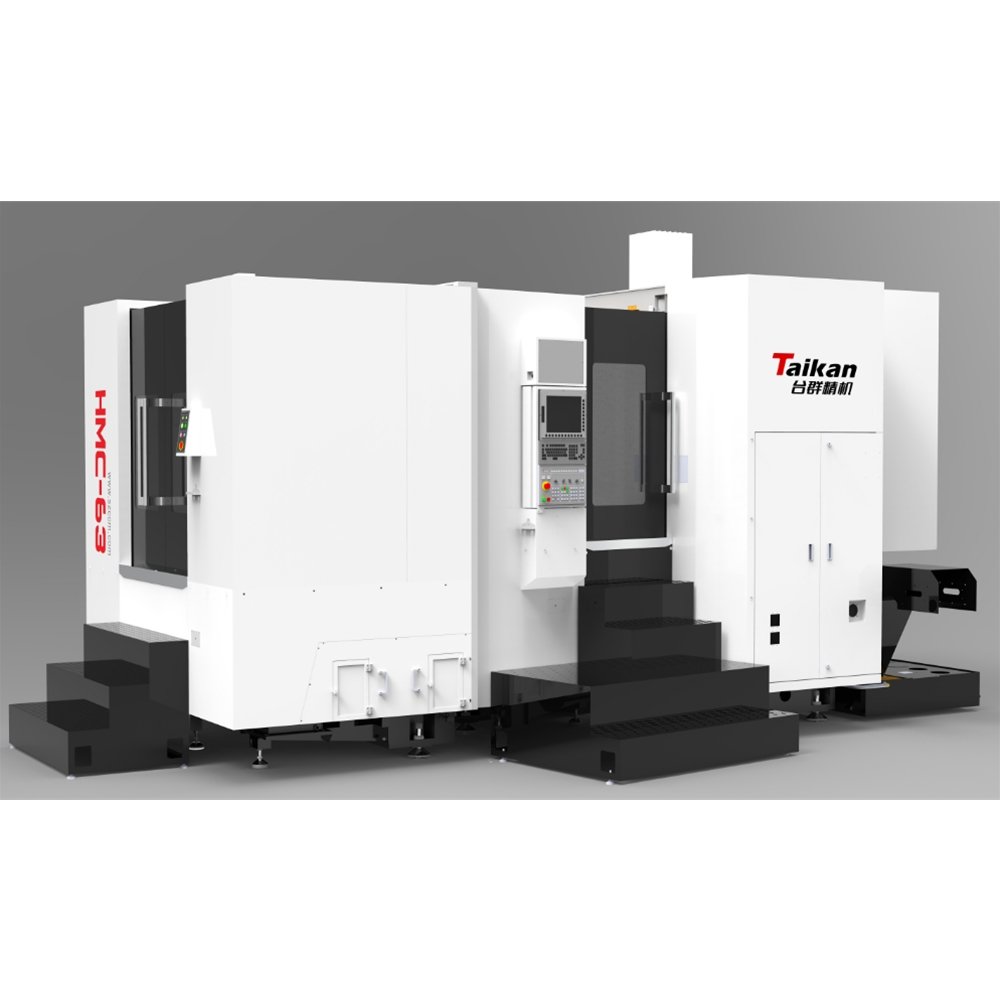 HMC-63双交换工作台卧式加工中心主要适用于工程机械、汽车、能源、信息、模具等行业的零件加工。特别适合于各种异形零件,箱体类零件的加工。工件一次装夹可完成多面的铣、钻、镗、扩、铰、锪、攻丝等多种工序加工,有效提高效率节约成本,同时能减少由于工件多次装夹而产生的累积误差,提高加工精度。机床采用正T型结构形式,立柱左右移动式(X轴),主轴箱上下移动(Y轴)和工作台前后移动(Z轴),并配有双交换回转工作台,大圆盘式伺服刀库。